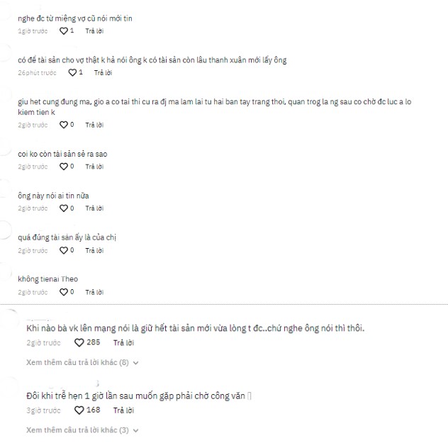 “Khi nào bà vợ lên mạng nói là giữ hết tài sản mới vừa lòng t được..chứ nghe ông nói thì thôi.”
