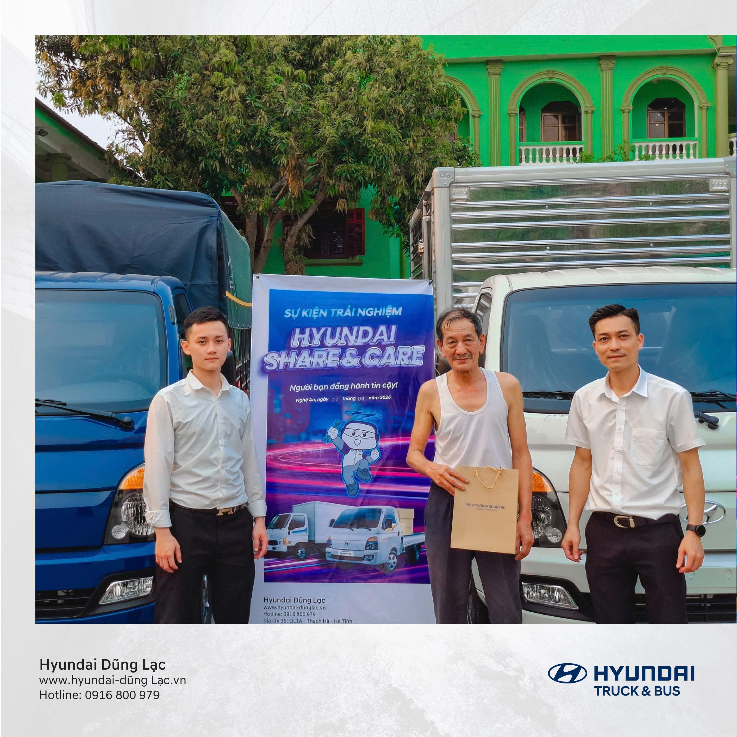 Hôm nay, ngày 17/04/2026, Hyundai Dũng Lạc triển khai chương trình Miniroadshow đến thăm và làm việc với 2 khách hàng tại thành phố Vinh.