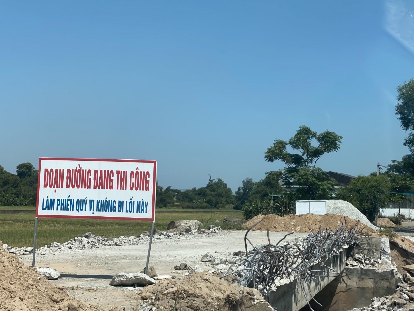 Theo phản ánh của người dân, suốt nhiều ngày qua, khi đơn vị tiến hành thi công dự án nói trên với tổng chiều dài chưa đầy 01km nhưng nhiều hạng mục thi công riêng lẻ đã gây nguy cơ tiềm ẩn mất ATGT. Đặc biệt, khi thi công phá dỡ 01 chiếc cầu nối ở tuyến đường này, nhà thầu không lắp đặt biển báo ngay từ đầu 02 bên tuyến đường khiến người và phương tiện khi lưu thông qua đây rơi vào cảnh “tiến thoái lưỡng nan”.