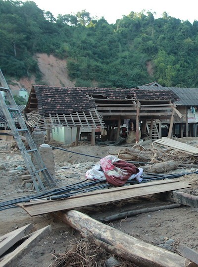 Nằm cách xa con suối Huồi Giảng nên may mắn không bị ảnh hưởng trong trận lũ quét, nhưng hơn 20 ngôi nhà ở bản Hòa Sơn nằm ôm chân núi cũng không thể ở được nữa do nguy cơ sạt lở.