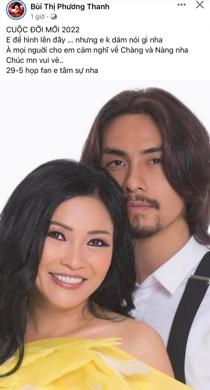Đến sáng ngày 25/5, Phương Thanh gây bất ngờ khi công khai ảnh rạng rỡ bên “đàng trai” với lời nhắn: “Ừ thì em để hình lên nhưng em không dám nói gì đâu nha. Để mọi người cảm nhận về Chàng và Nàng. Chúc mọi nguởi hôm nay phấn khởi. 2022 cuộc đời mới. 29-5 họp fan em tâm sự nha”.