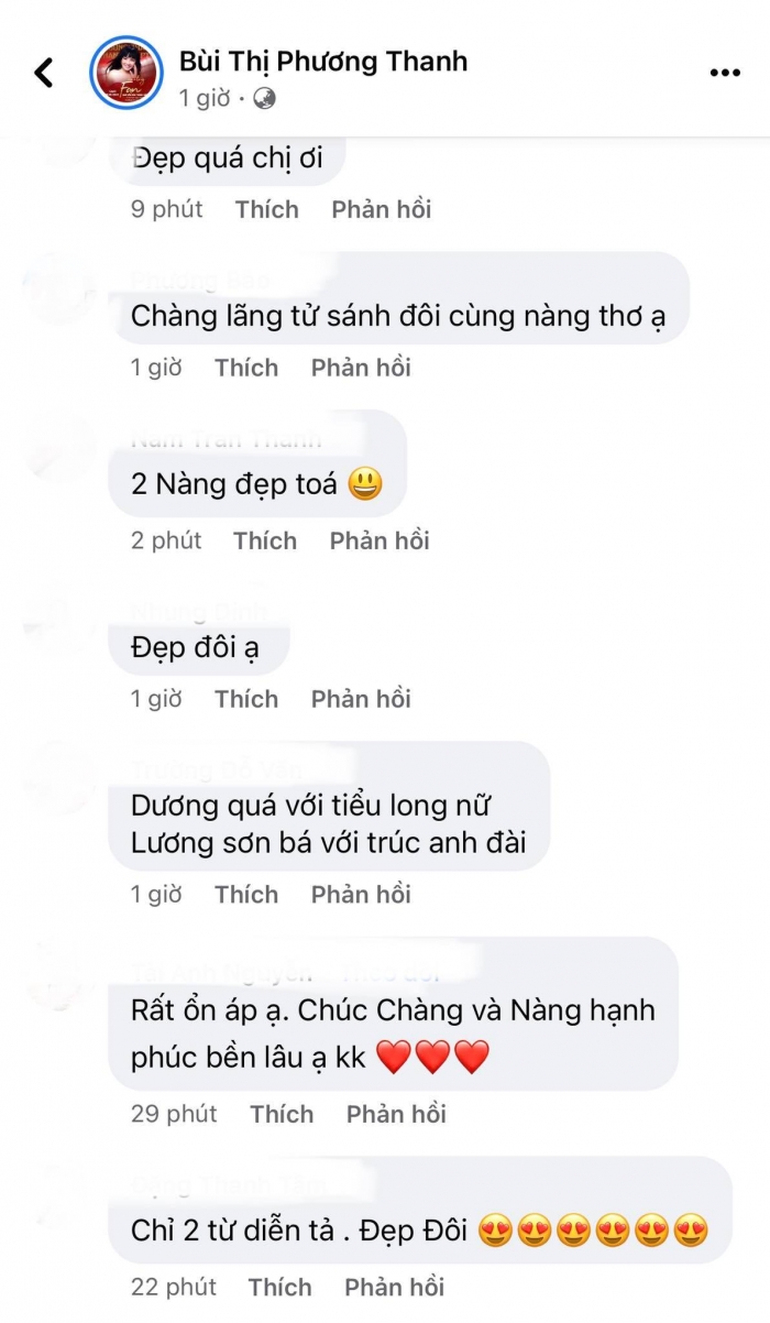 “Chàng đẹp trai lãng tử, nàng xinh tươi dung dị, chúc 2 bạn hạnh phúc an vui nha”,…
